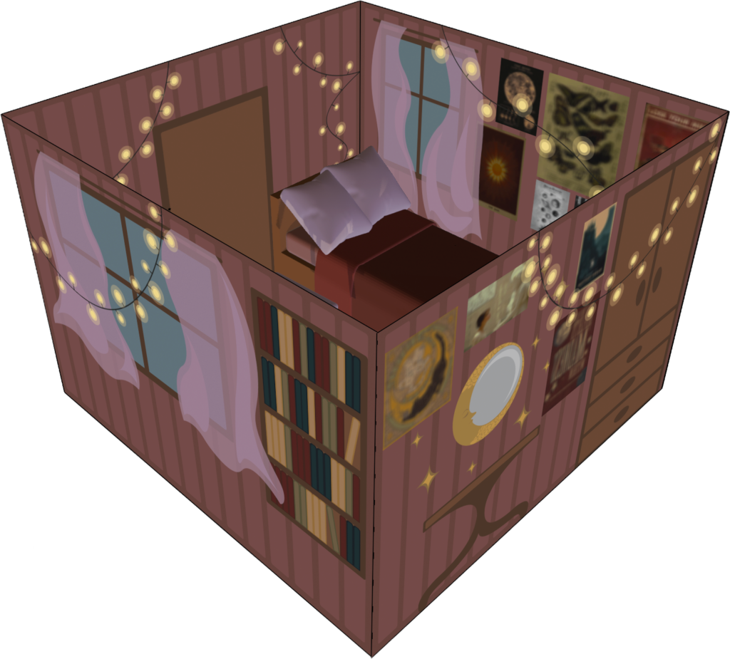 This piece of work was created to serve as a time capsule, inspired by the emotional significance that childhood and teenage bedrooms hold for many people in our generation. Built in the form of a model for the immersive experience on Blender and Illustrator, this project allows the users to see a three-dimensional collection of things that we associate with the safety and cosiness of our rooms.